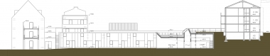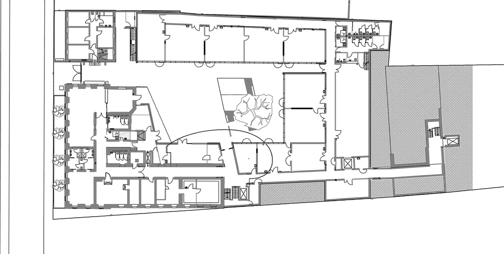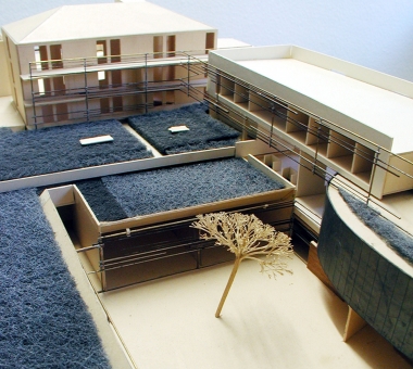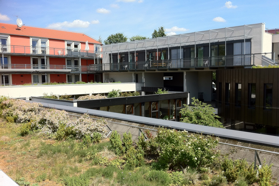 Die bestehenden Gebäudeteile mit Wohngruppen wurde um einen Speisesaal mit Küche ergänzt. Die Werkstatt und die dazugehörige Verwaltung sind topographisch in den Hof integriert, so dass die Wohnungen und Wohngruppen das Gesamtensemble abrunden und den Bewohnern trotz innerstädtischer Lage Frei- und Erholungsflächen zur Verfügung stehen.