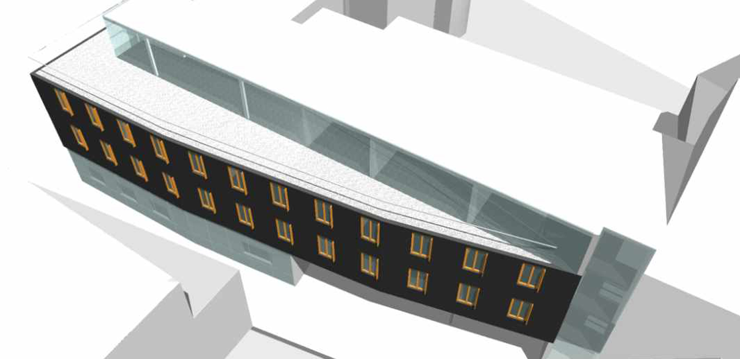 Entwurf eines Wohn- und Geschäftshauses in Würzburg.