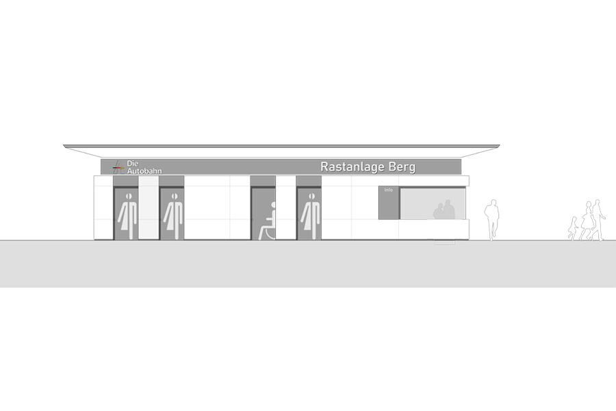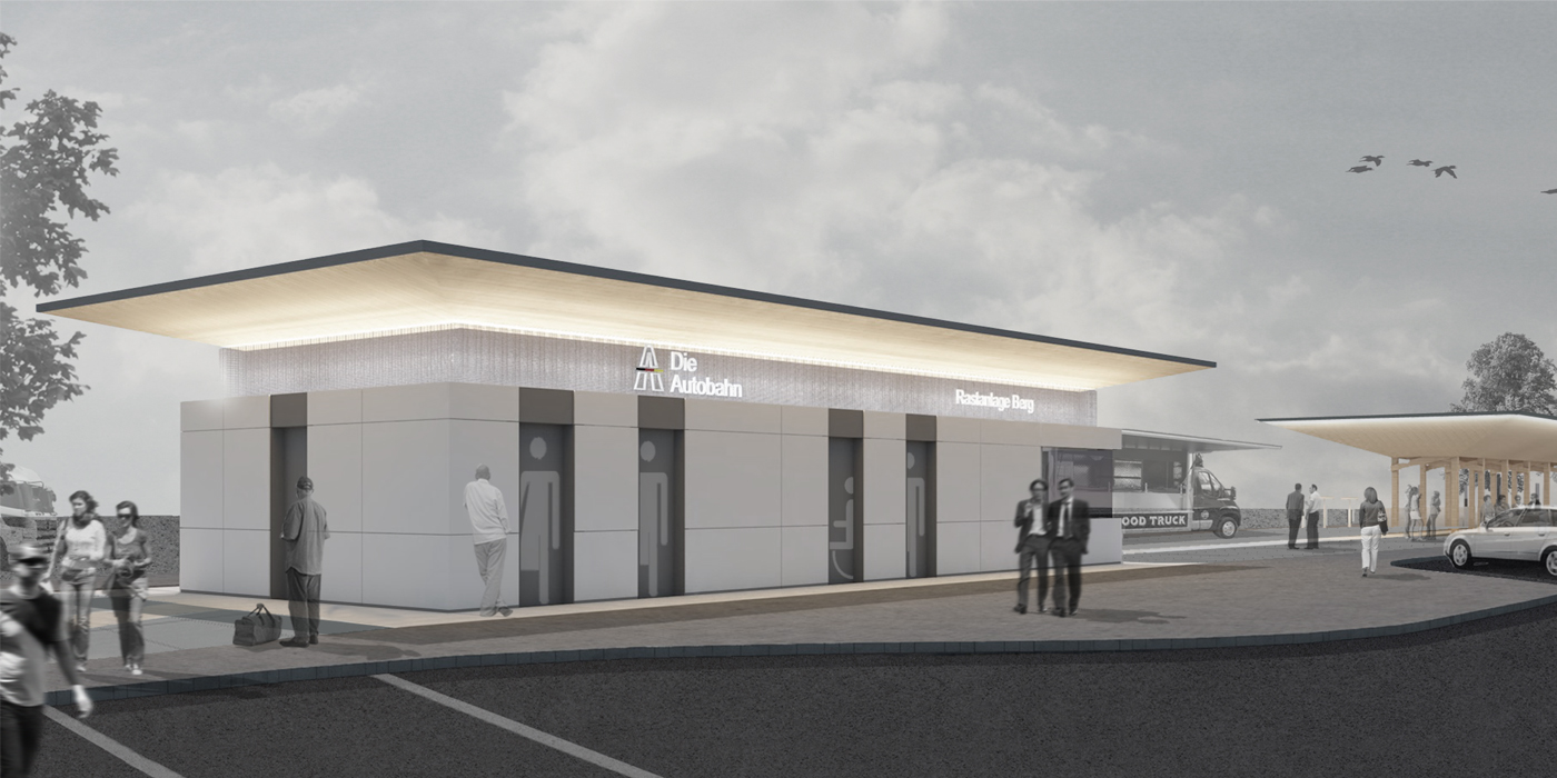 Im Gestaltungswettbewerb „Entwicklung eines modularen Gebäudes“ wird seitens der Bundesautobahn beabsichtigt entlang deutscher Autobahnen eine modular aufgebaute „Toilettenanlage“, bestehend aus wahlweise Solo-WC-Kabinen, Unisex-WC-Kabinen, Wascheinrichtungen, Aufenthaltsräumen, Technikbereichen sowie überdachten Freiräumen, für Neubauten von Rastanlagen aber auch Ersatzneubauten auf bereits bestehenden Rastanlagen zu entwickeln, die unter anderem auch als Handbuch für in Zukunft zu erstellende Gebäude dienen soll.