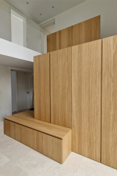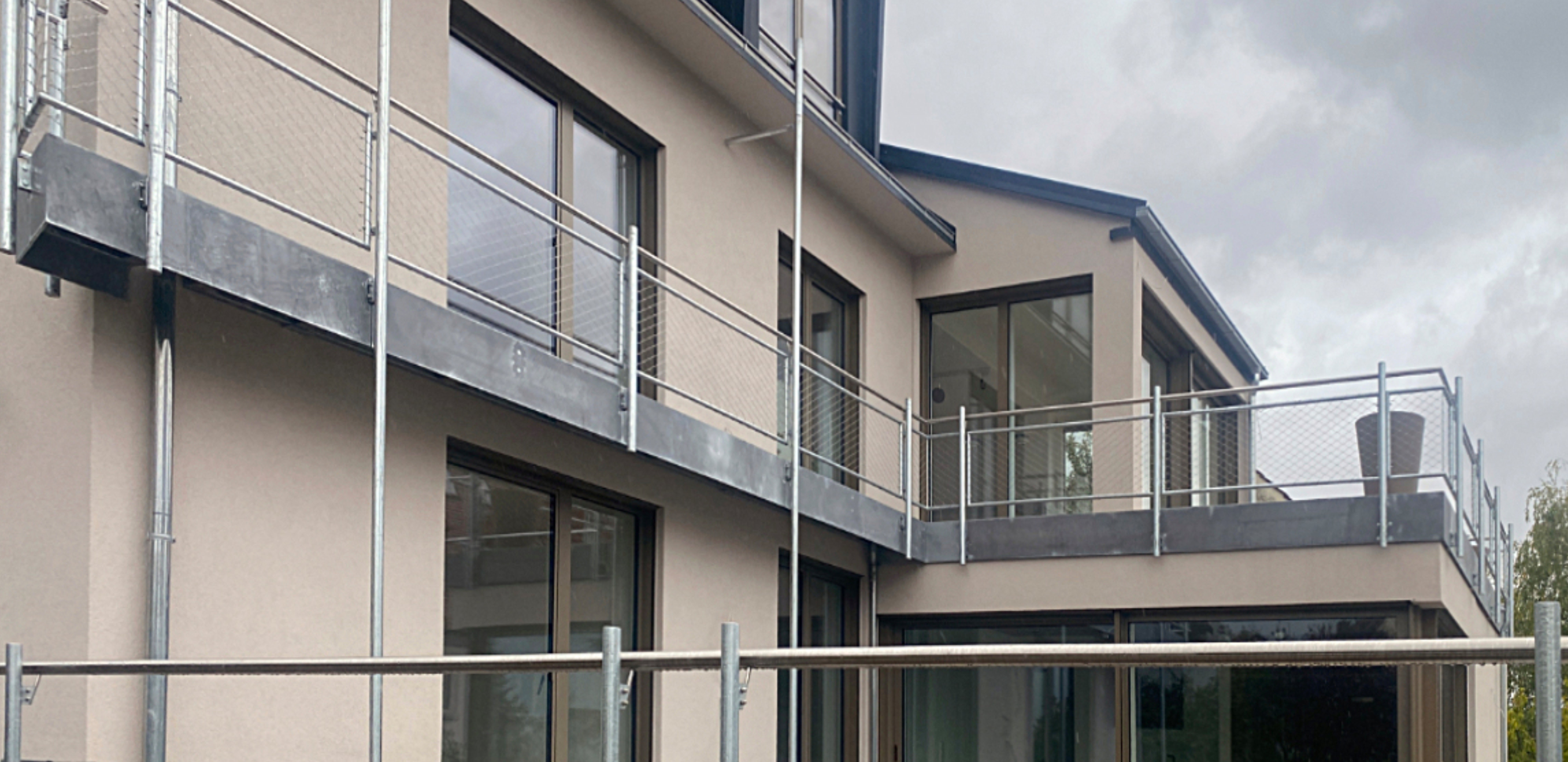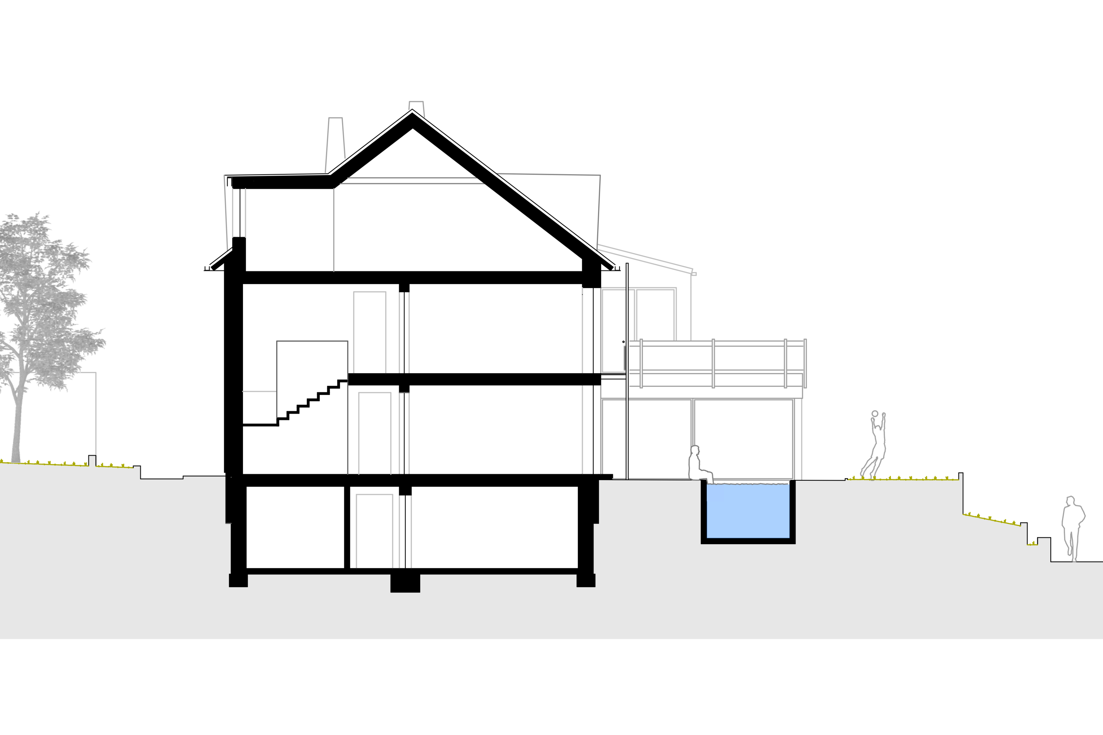 Eine Wohneinheit umfasst das Erdgeschoss und 1. Obergeschoss, eine weitere Wohneinheit befindet sich im Dachgeschoss. Die Wohneinheiten werden durch das bestehende, innenliegende Treppenhaus erschlossen. Die Wohneinheit im EG/OG erhielt zusätzlich eine interne Treppe. Zudem wurde die Wohneinheit im EG/OG durch einen eingeschossigen Anbau erweitert. Der Anbau umfasst einen Wellnessbereich mit Sauna, Dusche, WC sowie einem Ruhebereich, mit Blick Richtung Terrasse und Pool und dient im Obergeschoss gleichzeitig als Dachterrasse. Erschlossen wird die Dachterrasse von einer dreiseitig verglasten Wohnraumerweiterung, einem großzügigen Wohn- & Essbereich, sowie einem vorgehängten Stahlbalkon im 1.Obergeschoss. Vom Erdgeschoss wird die Dachterrasse zusätzlich mittels einer Stahlaußentreppe erschlossen. Der bestehende Garten im Süden, wurde für eine Terrasse mit Pool großflächig umgestaltet, zudem wurde eine Zisterne mit Rigole verbaut.