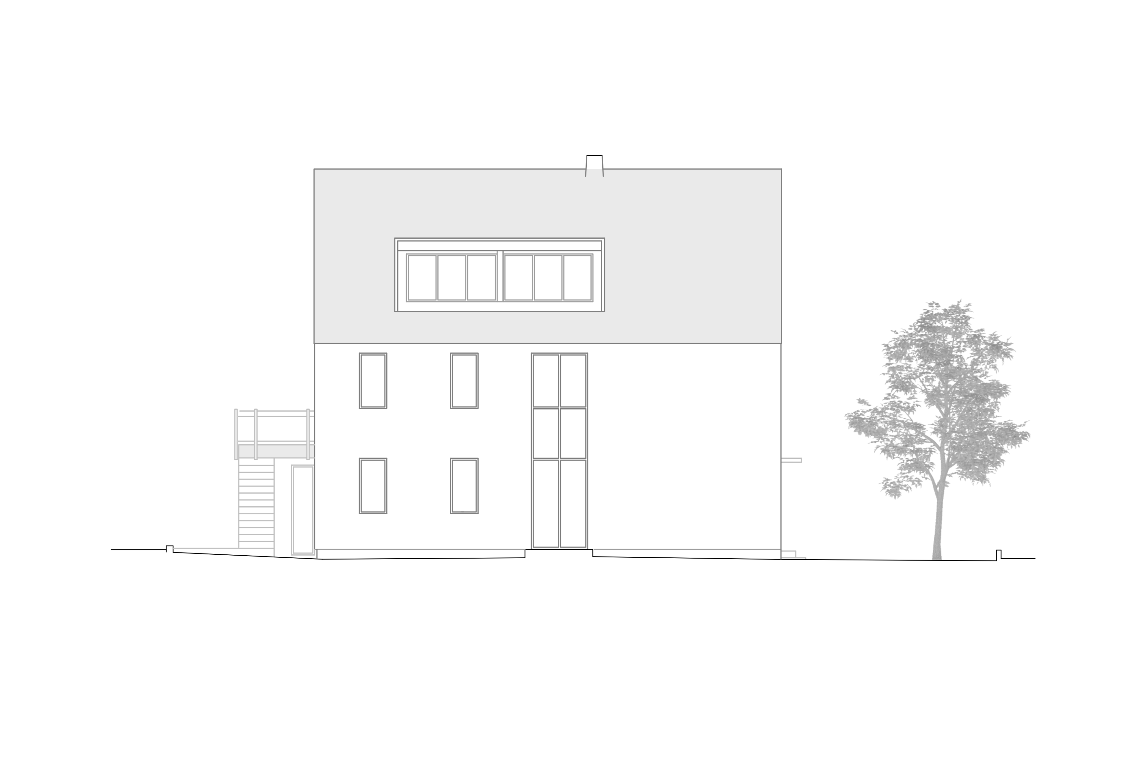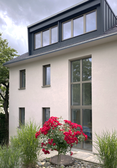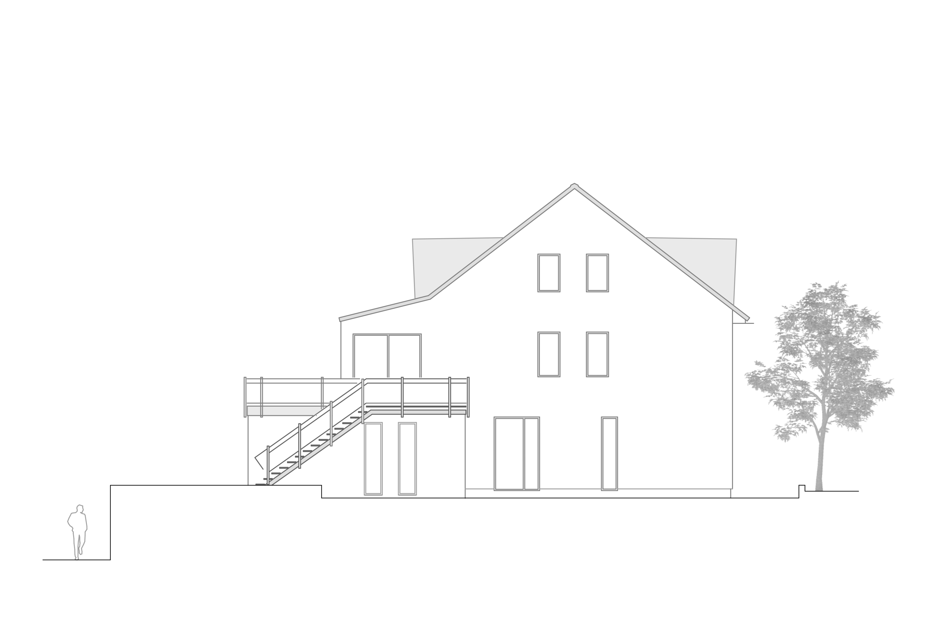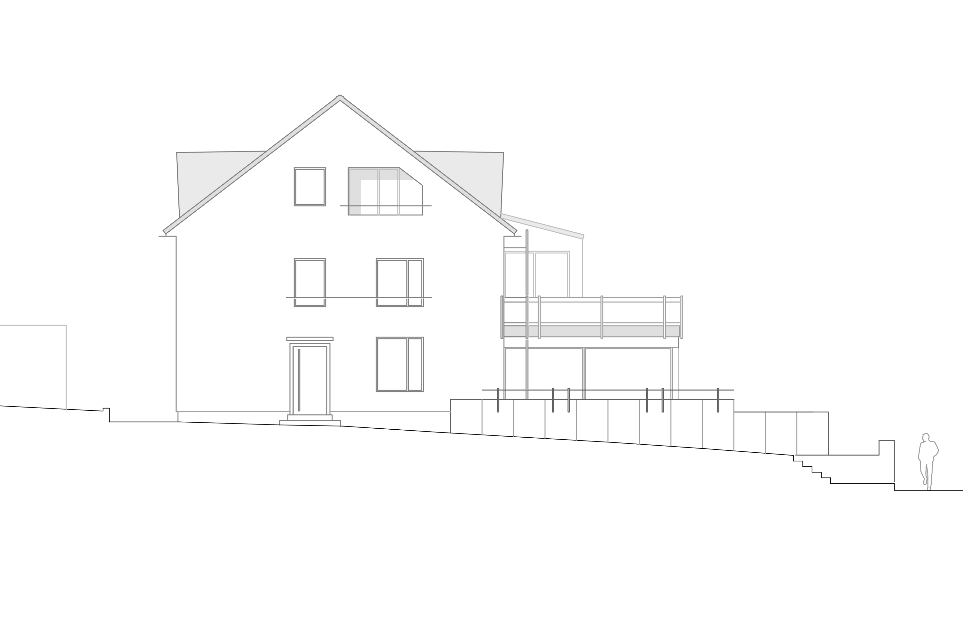 Das bestehende Wohnhaus aus den 1960er Jahren wurde entkernt, neu strukturiert, sowie energetisch mittels Fassadendämmung, Fensteraustausch und einem neuen Dachstuhl saniert. Neben den energetischen Maßnahmen wurden strukturelle Anpassungen durchgeführt und zwei Wohneinheiten geschaffen.